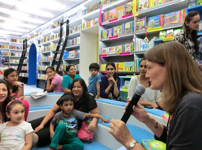 Oxford Bookstore partyDay 2 included all-day masterclasses--an Illustration Masterclass taught by Julia Kaergel of Germany and Emily Gravett from the U.K., and a Writing Masterclass taught by myself with author and Duckbill Books publisher Anushka Ravishankar (read an interview of Anushka on Saffron Tree here). At the end of the day a Book Souk offered the opportunity for participants to pitch manuscripts and ideas to publishers.