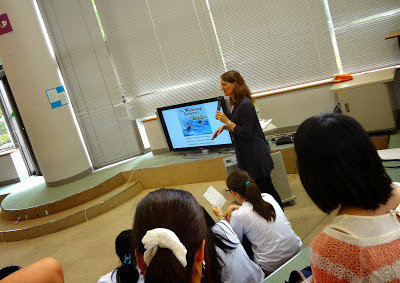 Photo courtesy of Doshisha International Junior/Senior High SchoolNow, teacher Sarah Ogawa has shared an in-depth write-up of that visit on ChildResearch.net titled "A 'Real' Writer Comes to School: An Author Visit Event at our Junior/Senior High School." If you want to know what author school visits are all about, this is a great intro! The article examines the purpose for this author visit and the effect on the students.For me, this was a particularly gratifying author visit; the day was so well prepared for by the coordinators and the teachers. Class activities relating to my books had begun prior to my visit, there was great advance buzz, the presentations and class groups were varied, and exit surveys were even conducted of students and teachers. Because of the solid preparation, students were engaged and responsive--a gift to any presenter. There was even a student-directed video interview.