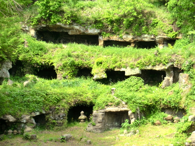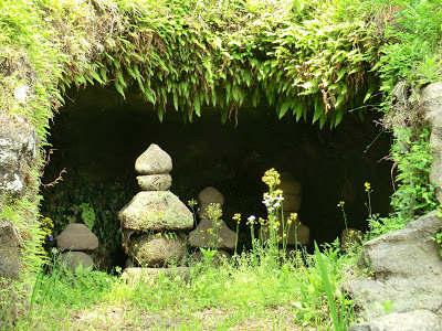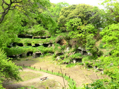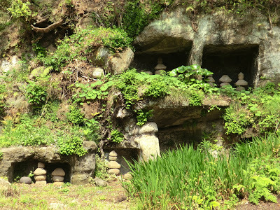 I posted on Mandarado previously on this blog, and I'm happy to report that the site of these ancient Kamakura Era cave tombs has been cleaned up, fenced, roped off and better protected. And this year, from April 20 to May 26 on Saturdays, Sundays and holidays, Mandarado is open to the public for viewing from 10 am to 4 p.m.