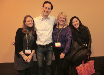 Holly Thompson, David Levithan, Ellen Hopkins, Mariko NagaiOn Saturday, another panel on narrative verse, Poetry Serving Story Serving Teens: Verse Novels for Young Adults, included myself, David Levithan, Ellen Hopkins and Mariko Nagai (Samantha Schutz was unable to attend). In this panel we each read an excerpt from one of our verse novels and discussed reasons for arriving at the particular structure for each book. We shared thoughts on the ease of portraying interior thoughts of characters through verse, and elaborated on the challenges of conveying dialogue and offered up some techniques for making dialogue succeed within verse. We talked about the intriguing fact that verse novels and novels in poems have become such widely accepted and mainstream forms in the young adult lit world, while still remaining fairly obscure in adult literature. While noting that selling foreign rights for verse novels remains a challenge, the panel was upbeat and hopeful that, given the widespread acceptance of verse novels by English-language YA readers, eventually more publishers worldwide will take on narrative verse in translation. And we all concurred that verse novels are best enjoyed in print form for now, since ebook formatting for verse can be problematic, altering the look on the "page" significantly.