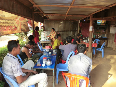 My meals were in a nearby roadside cafe run by Sovann's wife, and during several meals we watched the funeral processions of former king Sihanouk on a TV there.