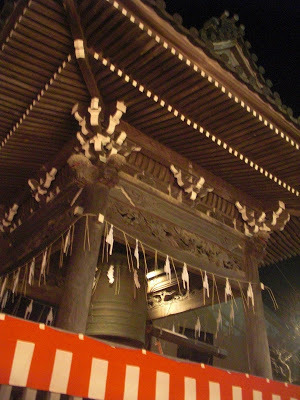 and ate our dinner of toshikoshi soba noodles for longevity. We watched a bit of Kohaku on TV, then near midnight went to the temple Hongakuji to ring the bell.