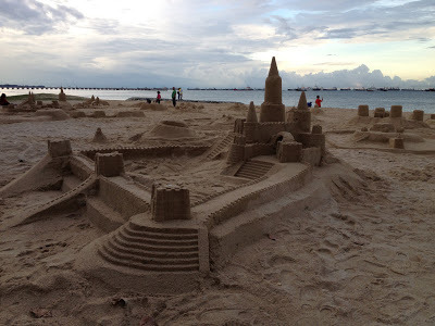 Singapore delivered about 24 hours of pouring rain while I was there, but I did have a lovely late afternoon walk with a teacher before the deluge along the East Coast. Some serious sand castling there: