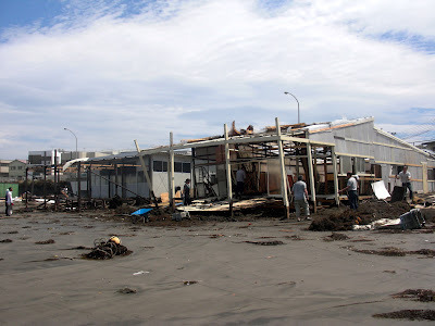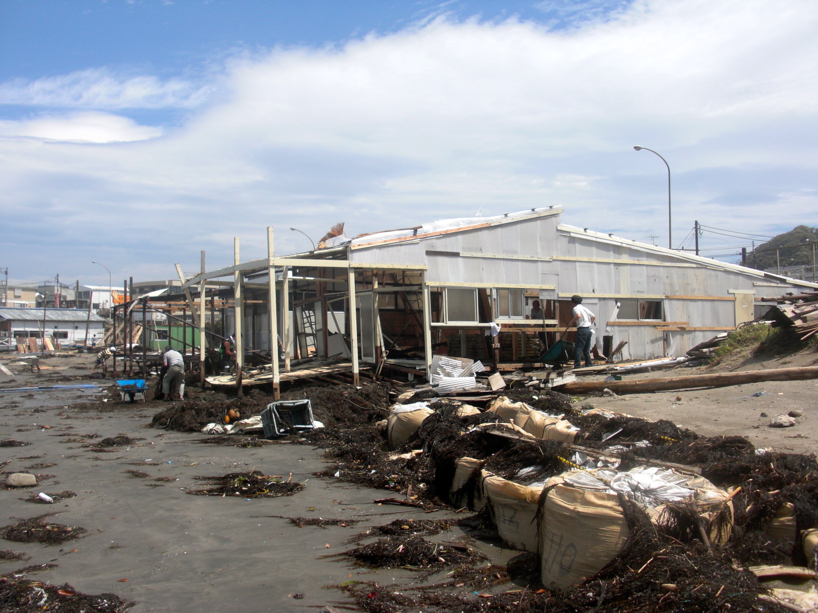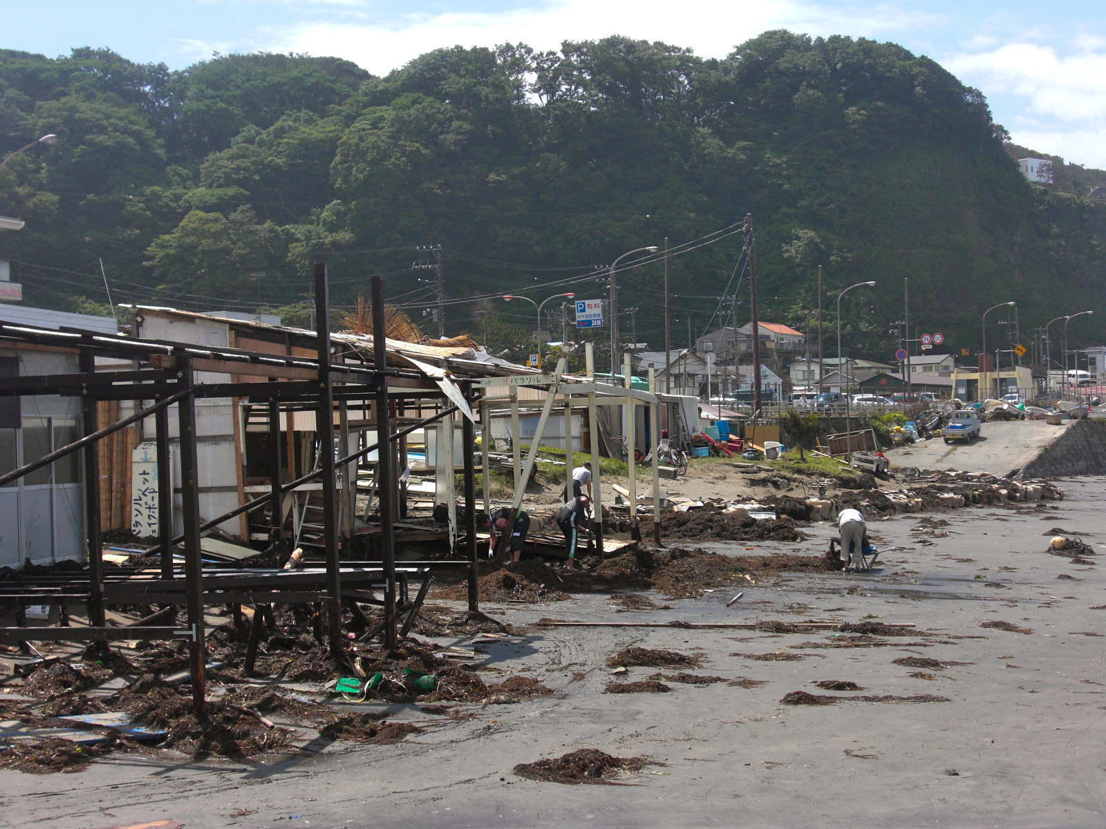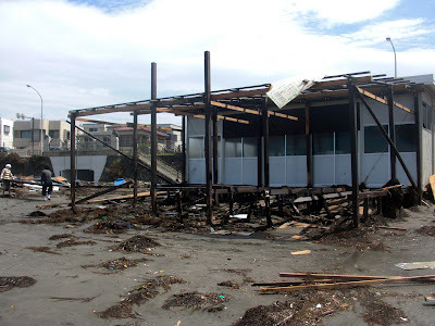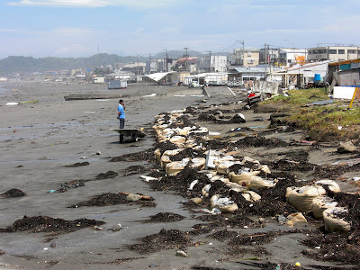 There was major damage to many of the umi no ie. Heaps of seaweed, construction materials and debris lie everywhere, and there is much clean-up work to do before reconstruction can begin. Hmm, perhaps it's time for the city to rethink this idea of building, even on a temporary basis, directly on the beach.