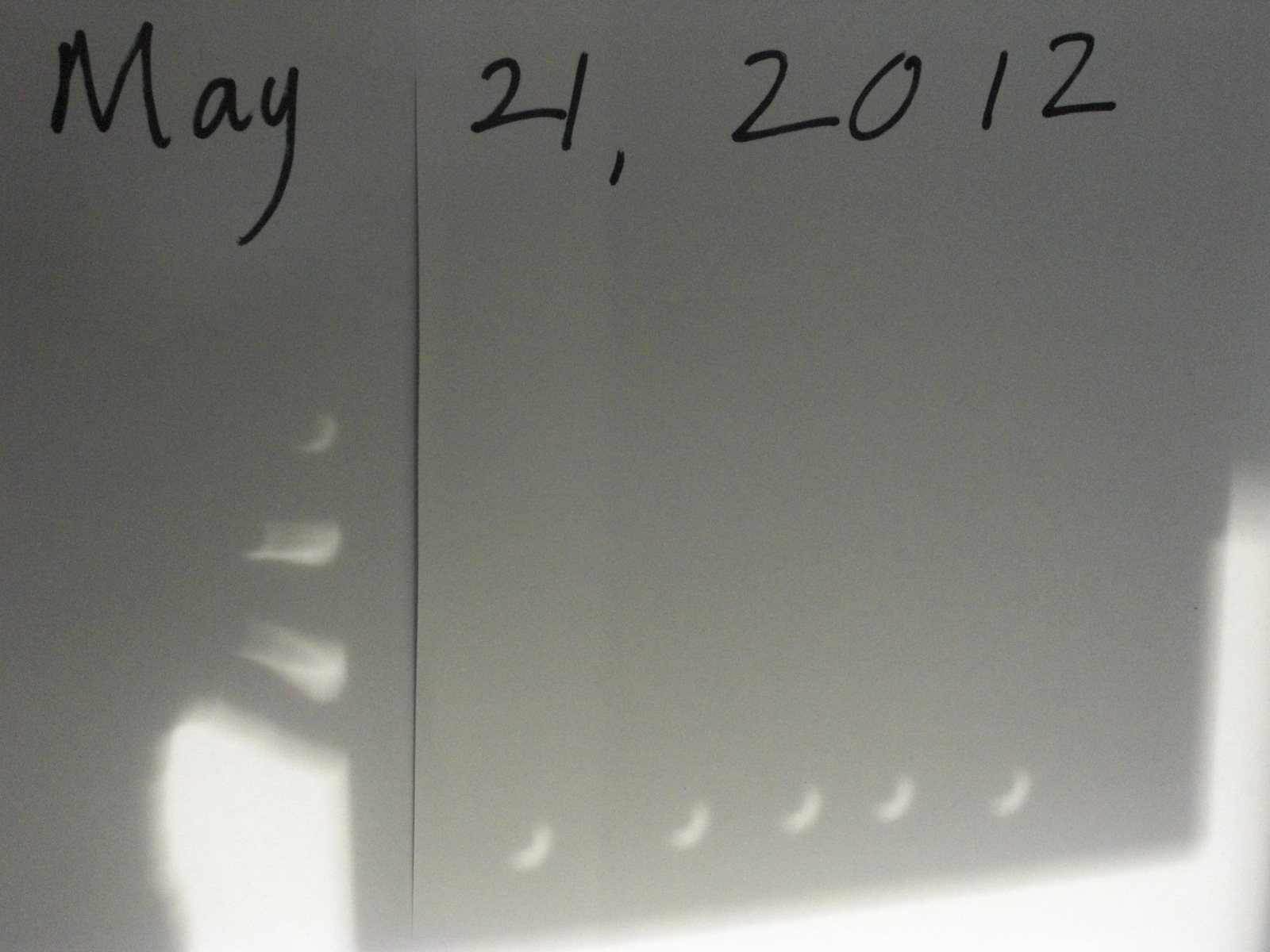 As the ring turned back to a crescent, we punch a hole in cardboard and projected onto cardboard covered with white paper.