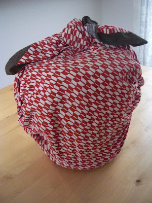 And as the crescent disappeared in the clouds we turned to the breakfast we'd planned to carry to the beach...all wrapped in a furoshiki...