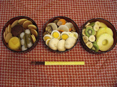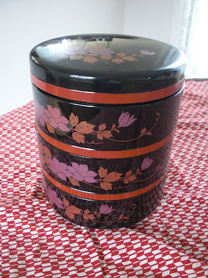 and packed in a laquerware set of round stacking boxes purchased in Kyushu many years ago.