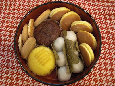 and, of course, sweets: cookies, mushipan steamed cakes, kashiwa mochi sweets wrapped in oak leaves, and mini dorayaki pancakes.