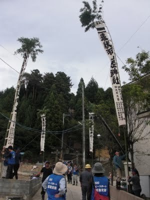weeding and grass cuttingIn the afternoon, locals cut bamboo poles, and volunteers helped hoist the festival flags.