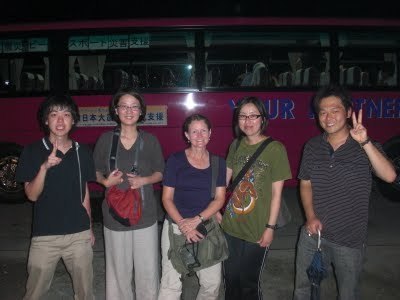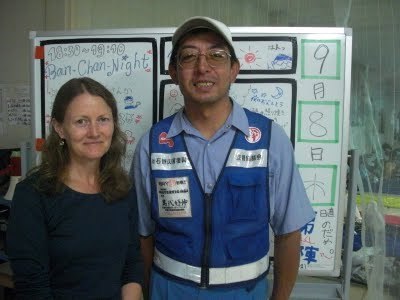 with Yoshinobu BandaiLater we watched Peace Boat's DVD of earthquake, tsunami, and volunteer efforts.