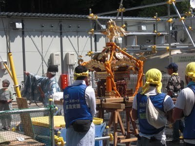 Four mikoshi tied together and carried in tandem through the streetsThroughout the weekend, the theme was helping Tohoku and encouraging Japan. The lottery featured many products from Tohoku.