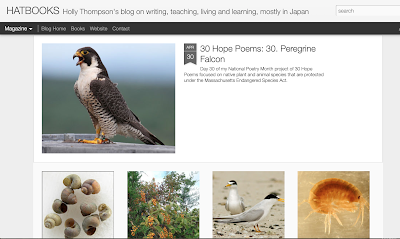 When I began this challenge, I had little more than a list of the 30 species I'd decided to highlight. In other words, I hadn't pre-written these poems over previous weeks or months. Some days in April, I drafted several poems at once, other days I struggled with a single poem for hours. At the midway point, I doubted whether I could finish. But I pushed on and finished! In the process learned so much about the thirty species I featured, as well as delicate and threatened ecosystems in Massachusetts, and my poem writing process.