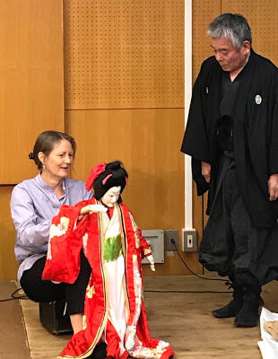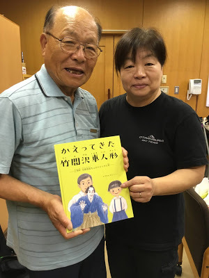 The picture book about this type of puppetry, かえってきた竹間沢車人形 (Kaettekita Chikumazawa kuruma ningyō; English title The Puppets Are Back! Chikumazawa Kuruma Ningyo Puppetry) written and illustrated by Noriko Sagesaka, is told from the vantage point of young Yoshiko who helps her father discover the puppets and follows along as he learns to manipulate the puppets and ultimately perform on stage. I was fortunate to meet the real Yoshiko and her father during my visit to Miyoshi Town!
