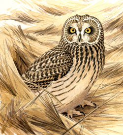 Short-eared Owl (Mass Audubon)a mate that loves a wing-flap showfrom soaring heights to ground belowa quiet place to build a nest withsun-dried grass--a sand plain's best