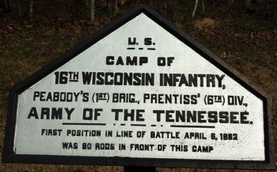 At about this time, ColonelFairchild received a severe wound in the thigh. He fell at the head of hisregiment and was borne back to the rear. Colonel Allen and Adjutant Sabin werestill cheering the boys to stand firm. But the enemy came in like a flood andPrentiss ordered another retreat, again directing the boys to fire from behindthe trees. This is the way the 16th Wisconsin ran, and the 18thWisconsin also. But they kept up a galling fire as they retreated. LieutenantVail told me he passed many of his men hugging close to the trees and withdeadly aim dropping the enemy, unmindful that they were already outflanked andwould slap them with his sword saying, ‘Boys, you must retreat, the enemy arefar in advance of you.’ This is the way we retreated. We didn’t retreat; weonly fell back to give fight to such overwhelming numbers as would have put usin their pockets in spite of us. Retreat is no name for our action thatmorning; the 16th Wisconsin rallied under their gallant leaderColonel Allen eight times that day.