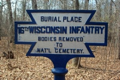 The long roll sounded and in 15minutes, Colonel Benjamin Allen and Lieutenant Cassius Colonel Fairchild wereat the head of the noble 16th Wisconsin, leading them to face theapproaching foe. Adjutant [George M.] Sabin and I mounted our horses togetherand were soon up with our brave boys, for we had not to ride over 800 yards. Anhour before this, those four companies (A, B, C, and D) had met the pickets atour right, skulked in ambush, and received their scattering fire. Here fell,almost at the first fire, our dear friend and most ardently loved Captain EdwardSaxe, shot through the heart. No lingering, tortured death was his. Here alsoin this skirmish Sergeant John H. Williams was shot in the throat or a littleto one side, and the ball came out at the center of the back of his head. Thepoor fellow said, “I am mortally wounded, loosen my belt.” One more breath and allwas over; the spirit left the body.