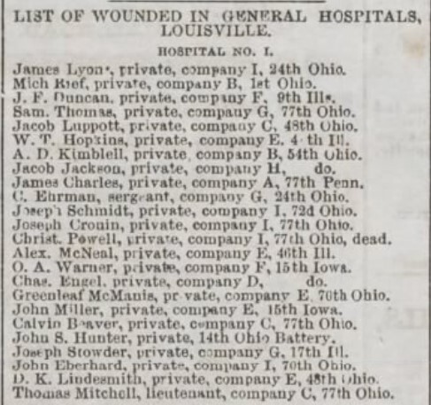 “The Pittsburg Wounded,” Louisville Daily Journal(Kentucky), April 15, 1862, pg. 3