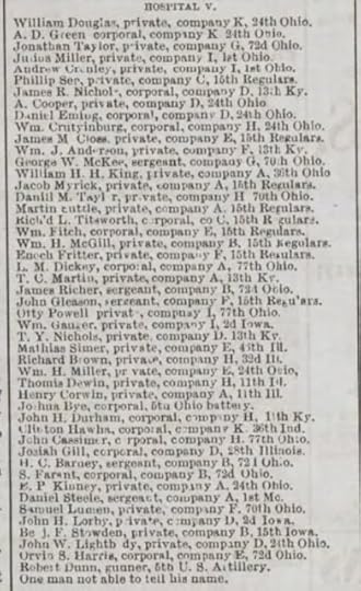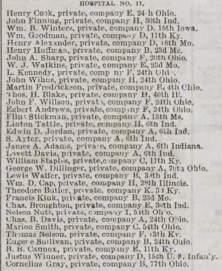On April 15,1862, the Louisville Daily Journal published a full list of the “sadfreight of mangled humanity brought to the hospitals of this city on thesteamer Minnehaha on Sunday night. Since their arrival, the followinghave died: Charles Powell, Co. I, 77th Ohio; John Fletcher, Co. H,36th Indiana; Hardin Boyd, Co. C, 4th Kentucky."