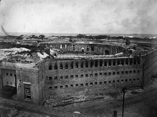 We now entered the fort and found thatthe 11- and 15-inch shells had effectually done their work. Fifteen guns weredismounted or entirely disabled. The citadel was completely destroyed by beingset afire by our shells and the whole inside of the fort was one mass ofrubbish that was knocked down from the walls. The garrison with enoughprovisions might have held out for months without any loss of life if they hadbeen disposed but it would have been useless for them to have suffered the annoyanceof broken sleep, imprisonment in the casemates, and perhaps sickness among manyother evils with no hope of reinforcements or supplies. If Page could havefired his guns they would probably have held out much longer. There were fourmonths of provisions in the fort and the garrison had been put on reducedrations the day we entered.