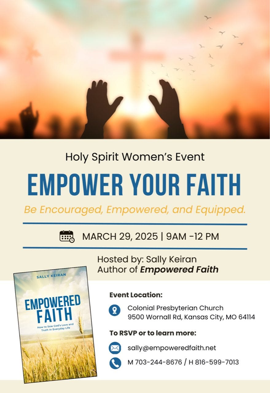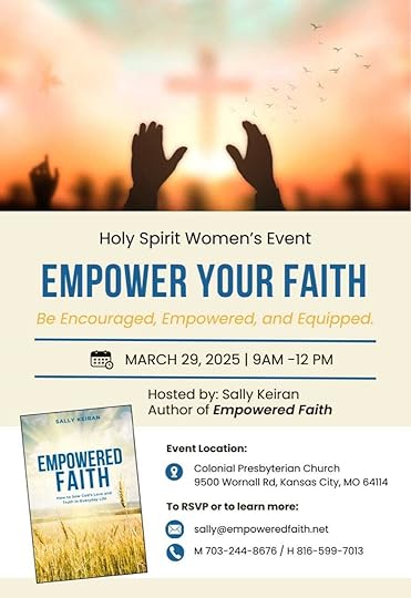 Empower Your FaithSaturday is going to be a big day! Author Sally Keiran invited me to give testimony at her "Empower Your Faith" book launch. Join me in person and be empowered by Sally and friends!