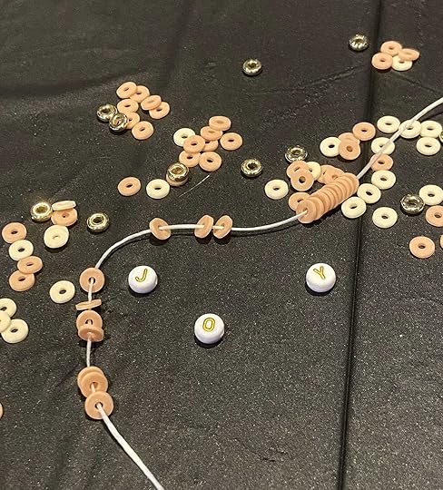 So, I gathered all the beads and put back them in their container. I kept three beads, the ones that spelled j-o-y. Maybe I’ll make another bracelet with them one day.