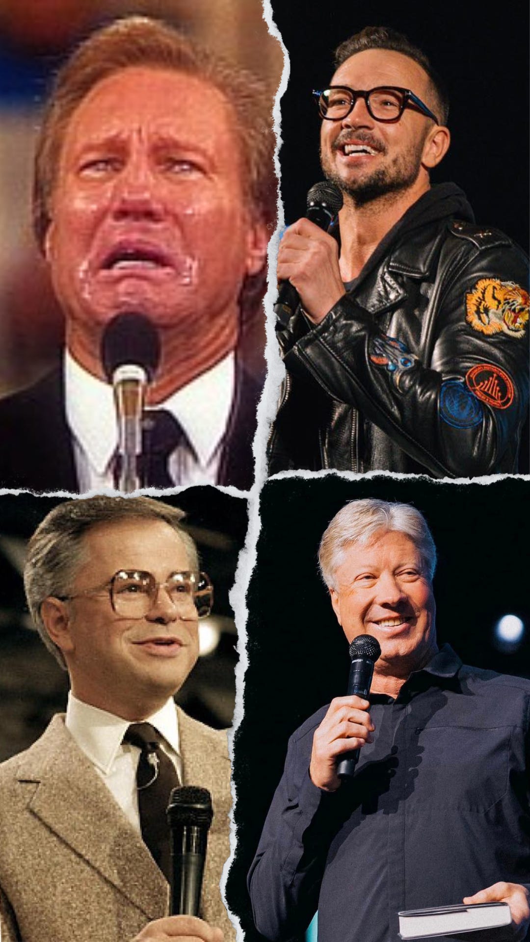 Photo Illustration: From top left, Jimmy Swaggert, Carl Lentz, formerly of Hillsong Church, Jim Bakker and Robert Morris, formerly of Gateway Church.