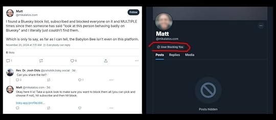 Apparently, after minimal time on Bluesky, and some rather uncontroversial posts, I found myself on one such blocklist. The reasons for my inclusion are not articulated.