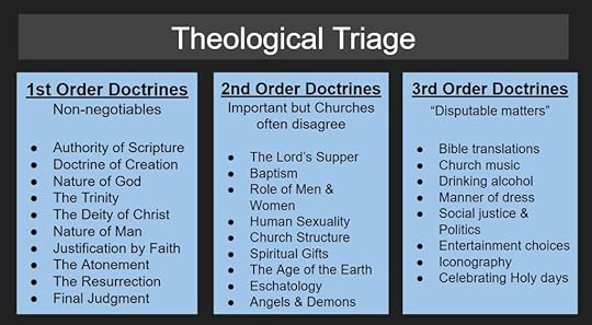 Here’s a typical division of some biblical doctrines and the tiers of importance they are often placed.