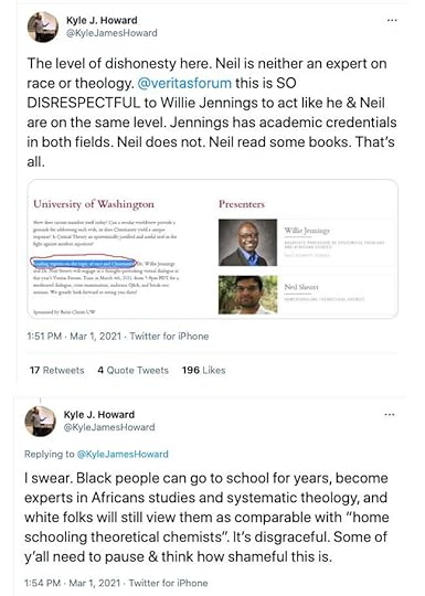 Take a look at my brief exchange with Anthony Bradley, professor at King’s College in New York. He’d tweeted about not taking certain critics of Critical Race Theory (CRT) seriously. Among them was Neil Shenvi. Shenvi has provided some helpful, gracious, critiques of the emerging ideology. Bradley disagreed, saying “Neil’s stuff isn’t helpful at all & is blindly tribal. I’d never recommend it. ” And he made sure to add: “I have a PhD in this.” I commented that Bradley’s “dismissive” response to Shenvi made one wonder whether or not anti-racists are really serious about a discussion. To which this exchange followed.