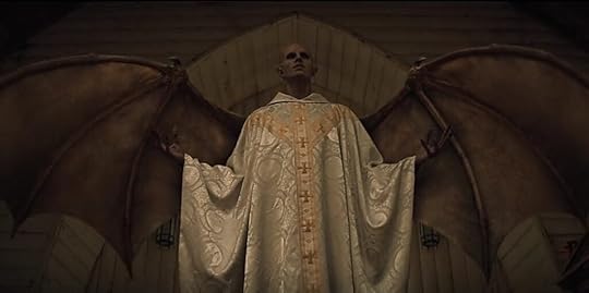 The arrival of Father Paul (played by Hamish Linklater) sets the story in motion. Linklater gives an especially compelling performance as a charismatic, but darkly duplicitous figure. Running cover for Father Paul is Bev Keane, an incarnation of Mrs. Carmody if ever there was one. Carmody, if you remember, was the rabid religious fundamentalist of Stephen King’s “The Mist.” Such caricatures are common in film and Bev Keane fills the role admirably, protecting Father Paul’s sinister ministrations, framing Muslims as terrorists, and quoting Bible verses to suit her apocalyptic paranoia. But when miracles follow the priest’s arrival (healings and recoveries), the entire town is prompted to give heed to he (and Keane’s) zealotry.