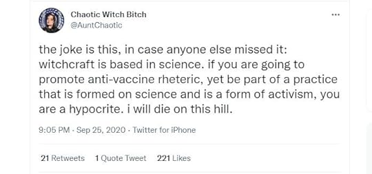 While many have taken Christians to task for vaccine hesitancy, pagans appear equally divided on treatment. Like this popular TikTok witch who scolds the vaccine hesitant among her ranks.