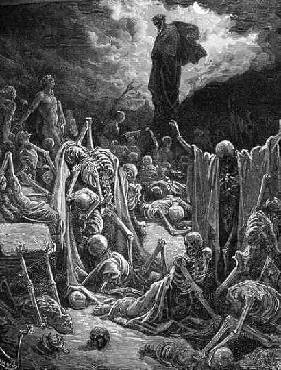 Engraving of “The Vision of The Valley of The Dry Bones” by Gustave Doré
