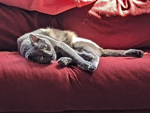 (My cat Marcus Aurelius being a tangle of limbs and tail in a sunny spot)