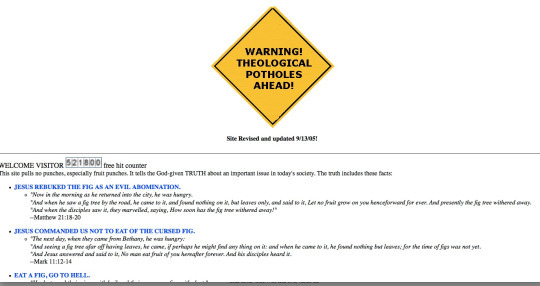 Anyway, God Hates Figs has been down for years, because I lost the domain name. For a few years, the current domain owner had a Robots.txt file that prevented Archive.org from keeping old versions of the site, but luckily that’s no longer the case.