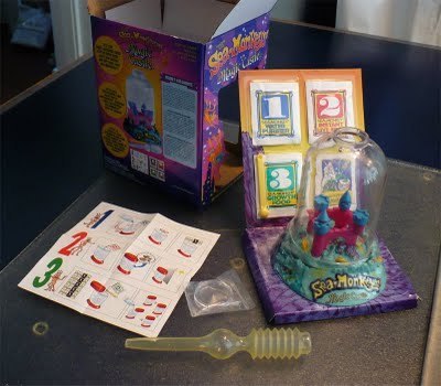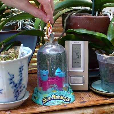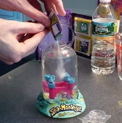The moment of truth: adding the sea monkey eggs and the "secret catalyst" (alternately described in the literature as the "magic powder") to the purified water. Skeptics might consider Clarke's Third Law: "Any sufficiently advanced technology is indistinguishable from magic."