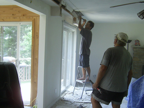 A few months ago, we tore down a closet and a wall to create an open concept living space in our house at the lake.