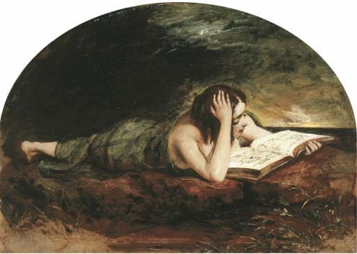 Reclining girl reading a book, the sea beyond~ BY: William Etty 1789-1849
