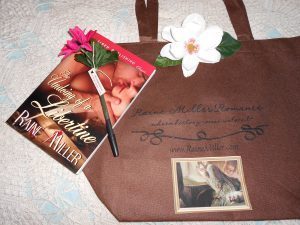 To celebrate the release of the print version of The Undoing of a Libertine, I am having a giveaway of a signed book, a tote bag and a flower pen. Join me on my Facebook page and comment there. Contest runs through July 10th when I will choose a random winner from those that comment. I made the pens and took a ton of them to Rom Con with me. Everyone loved them and my tote bags? Well, they are da bomb. You definitely want one of these to take to the store. Do your part for a green economy and all that. Right? Hope to see you around Facebook. In the meantime, I am hard at work on two new books you can be assured. More on that later–I gotta get back to writing. Raine~