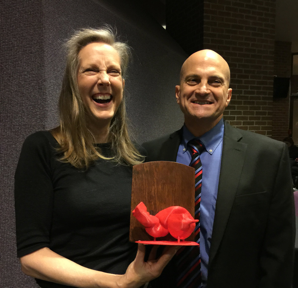I love the little payoff in that last line. She lets us know that, despite her fascination with biology, she too finds opening an ostrich stomach to be a little weird. Still, she revels in the realm of the gross, venturing to bodily parts and functions that most of us have been told not to discuss in polite company. For her lecture in Syracuse, which was actually a conversation between her and a physician from Upstate University Hospital, she took the stage carrying a gift she had received during her tour of the hospital earlier that day. It seems the hospital has a 3D printer, and an admiring staff member printed for her a 3D replica of a cadaver’s rectum and anus. It was in plastic and colored a rather attractive shade of red. She declared her intention to place it on her desk as a pen and pencil holder.