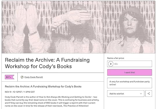 I’d love to invite you to check out the fundraising workshop on Nov 9 and contribute or share with your communities. Over $1200 has already come in to meet my $8820 goal to buy back 980 books and print stickers for the covers.
