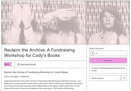 Yesterday I wrote about wanting to buy back the remaining 980 copies of How to Not Always Be Working and Getting To Center that still say my deadname on them - doing this will trigger a reprint!