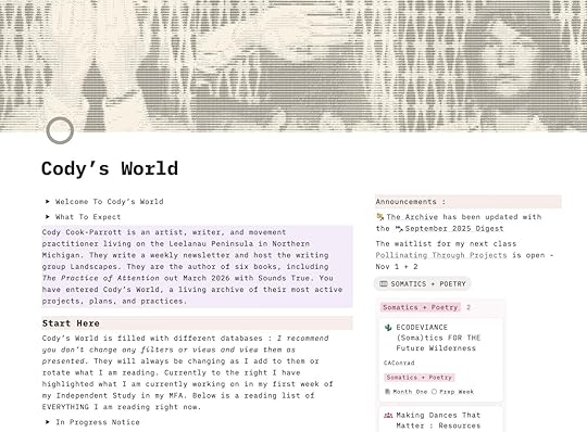 Want access to my digital garden of pollinated projects? Become a paid subscriber to access Cody’s World : my Notion based universe of projects, archives, dance videos, writing, and more - $5/mo or $35/year