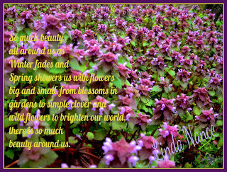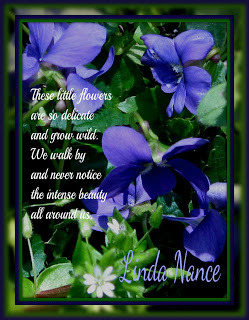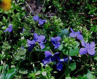I spotted some little violets growing wild. That area of the yard is natural. The trees had been so huge that the foliage towered above creating a dense canopy of shade below. We could sit under it in a gentle rain and not even get wet. An ice storm a few years back broke and destroyed most of them. The loss of such beautiful trees saddened me. Now I see many new thing growing in the area, as sunlight touches the earth where there had been only dense shade. I see little flowers. Each had its season and each had such beauty in its own way.