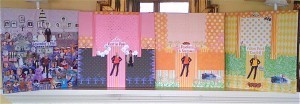 Krissie: Jill Barnett uses those science project triptych boards. And the left side is the opening act, the middle is act two, and the right is the closing act. At least, that's what I think she did.