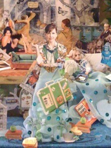 Krissie: When I was about twenty I did a scrapbook of pictures that were evocative to me. Mixed words with photos and stuff. So that was what I thought of when I did my first book collage. I had this historical and I was having trouble getting into it so I cut out photos that made me think of the book. but it was much too literal. It ended up just pasting pretty pictures on poster board.