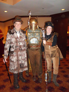 We had a great time at ConTemporal last weekend. Attended some panels, went to shows and spent lots of time in the dealer room. Listened to music by The Gin Rebellion. Here's picture of me, the wife and Steampunk Boba Fett.