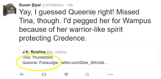 Rowling answered fan questions on Twitter yesterday revealing the Ilvermorny Houses for Queenie and Tina. I was especially thrilled as I'd guessed one of them right!