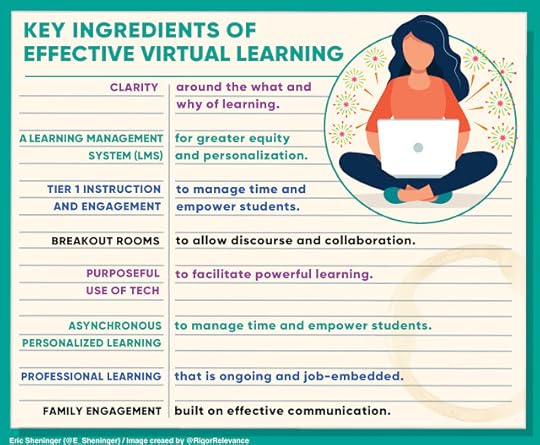 Typical means of professional development (PD) such as drive-by events, one-off workshops, or book studies, while having value, will not lead to impactful virtual learning at scale. There needs to be a shift from “PD” to professional learning that is ongoing, job-embedded, and research-aligned. For virtual learning to flourish, there also needs to be continual feedback, modeling of everything discussed in this post, accountability for growth, and evidence of impact.