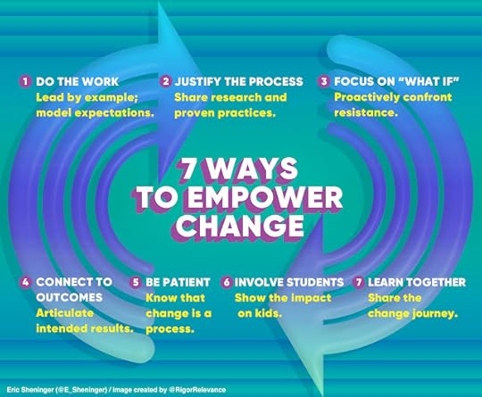 Do instead of asking. Impactful change comes from your ability to effectively model expectations for others. While it might be lonely at first, leading by example is the best way to empower others.Justify with research and proven practices. Sharing what has been found to work strengthens your call to action.Focus on “what if". Tackle fears and resistance head-on to alleviate concerns by being ready to counter any “yeah but” responses. Connect to outcomes. Clearly articulate how the change will improve professional practice resulting in improved student learning and achievement.Be patient (to a point). Change is a process, not an event. Treat your colleague like a student and remember how satisfying and rewarding it was when you helped that student succeed. Help others see the value of the change on their own by taking a step back. Get students involved. There is no better way, in my opinion, to convince others to change when educators can see firsthand the impact it has on kids.Learn together. Encourage colleagues resistant to change to attend professional learning opportunities with you, especially administrators. If that doesn’t work, make sure you present what you learned at any recent learning experience, either during a faculty meeting or one-on-one.