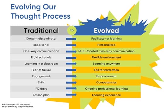 The mind can be either an asset or a detriment to growth. My hope is that the chart presented in this post can be used to develop questions about where you are, but more importantly where you want and need to go for the betterment of kids. To prepare them for a disruptive world we must embrace an evolved thought process.